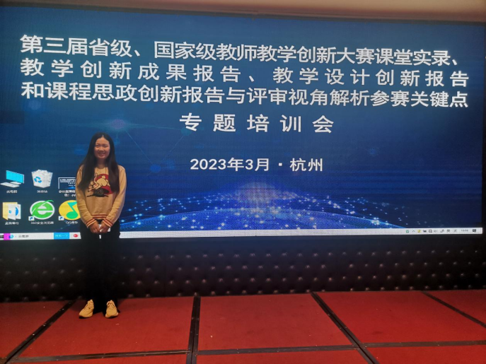 近日,必赢组织部分教师赶赴杭州参加2023年3月3日-3月6日的“高校教师教学创新大赛”专题研修班。本次培训将围绕“课堂实录、教学创新成果报告、教学设计创新报告、课程思政创新报告和评审视角”等环节,进行细致透彻地讲解。