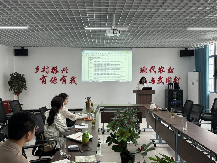 活动中,茶学系主任李冬花以《茶学专业毕业论文》课程大纲为例,从课程简介、课程教学目标、教学目标与毕业要求指标点的支撑关系、教学内容、教学方法、考核方式等方面做详细介绍。