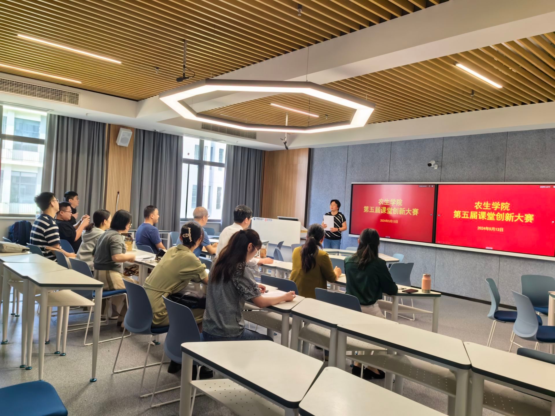 5月13日,437必赢会员中心第五届课堂教学创新大赛在乡村振兴学院举行。本次比赛共有五个系24名教师参赛,本次活动由教学副院长杨芳主持,院长王健、党总支书记孙保本和无课教师观摩整场比赛。